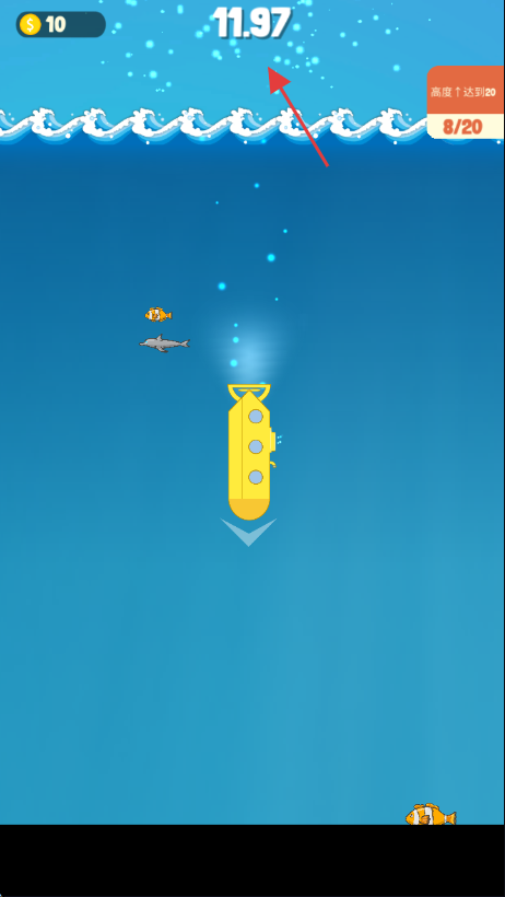1、點擊蓄力物理操控:通過點擊屏幕蓄力控制潛艇跳躍力度與角度,軌跡遵循牛頓物理規(guī)則,需精準(zhǔn)計算拋物線落點避開障礙,如短按貼海底穿行輪船、長按跨越水下尖刺。