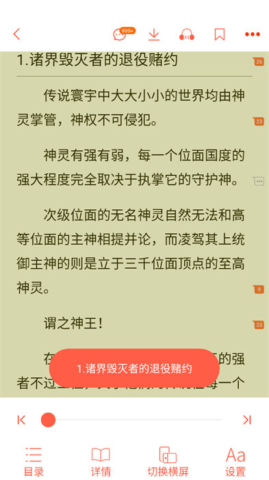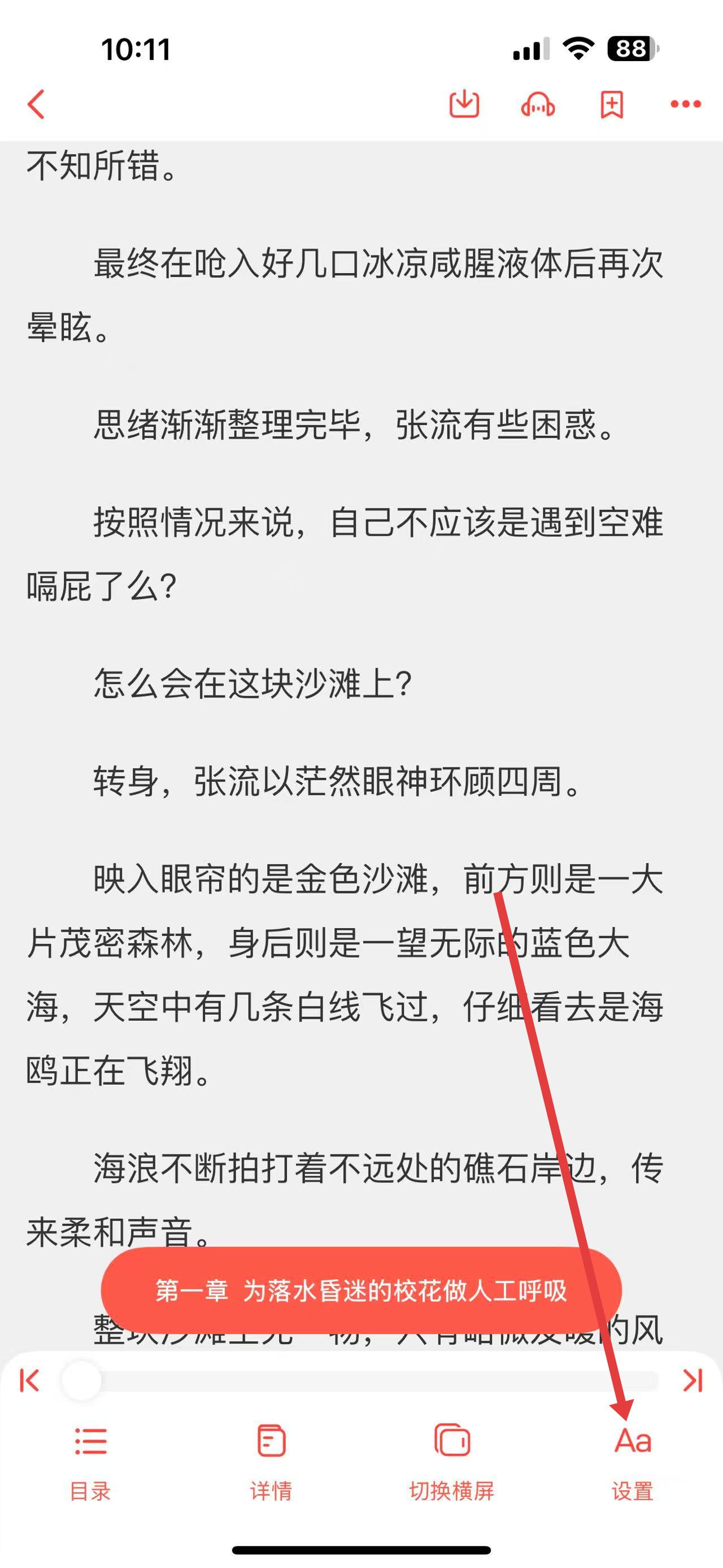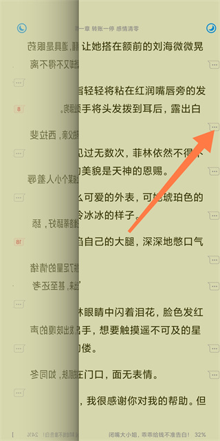 5、點擊開始閱讀之后就能進(jìn)行小說內(nèi)容的閱讀了,點擊屏幕中間可以根據(jù)自己個人的閱讀需求去調(diào)整設(shè)置;