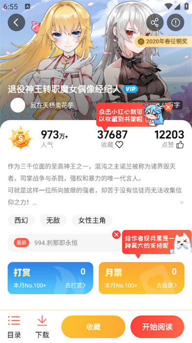 2、在作品詳情界面,點擊開始閱讀按鈕,進(jìn)入小說閱讀界面。