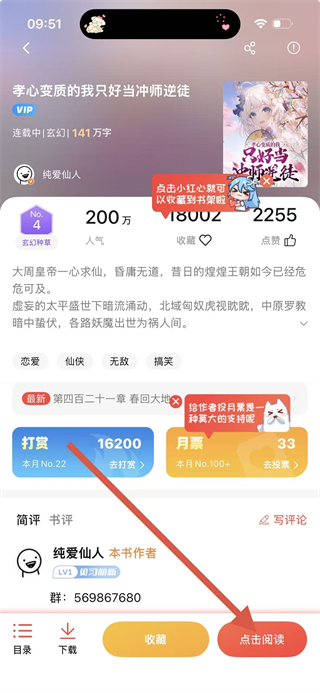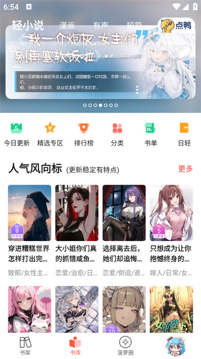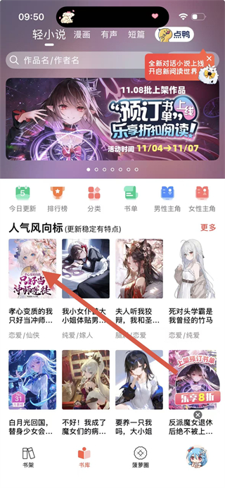 1、在菠蘿包輕小說首頁,點擊人氣風(fēng)向標(biāo)里的作品封面,進(jìn)入作品詳情頁面。