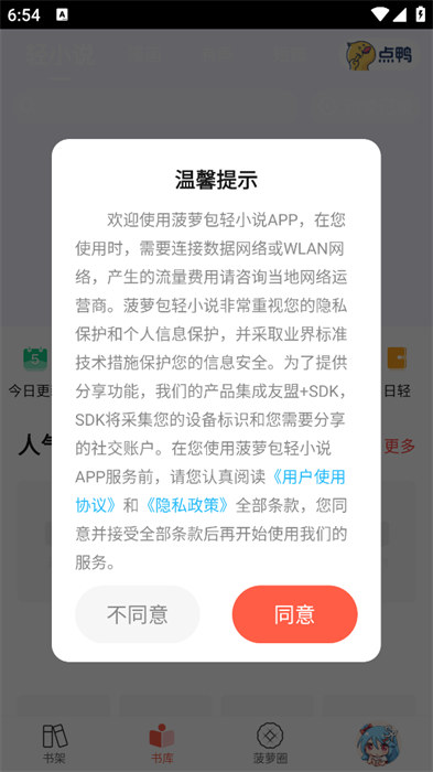 1、打開軟件之后閱讀隱私政策和用戶協(xié)議,點擊同意之后就能進(jìn)入到軟件;