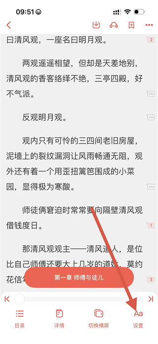 3、在小說閱讀界面,點擊屏幕呼出操作欄,點擊設(shè)置選項,進(jìn)入閱讀設(shè)置界面。