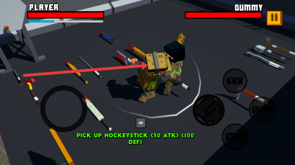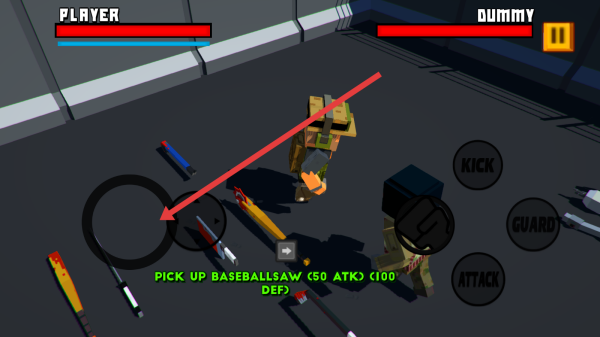 3、注意觀察地面散落的武器,點擊拾取后點擊攻擊按鈕,利用槍械或道具對敵人發(fā)起進攻。