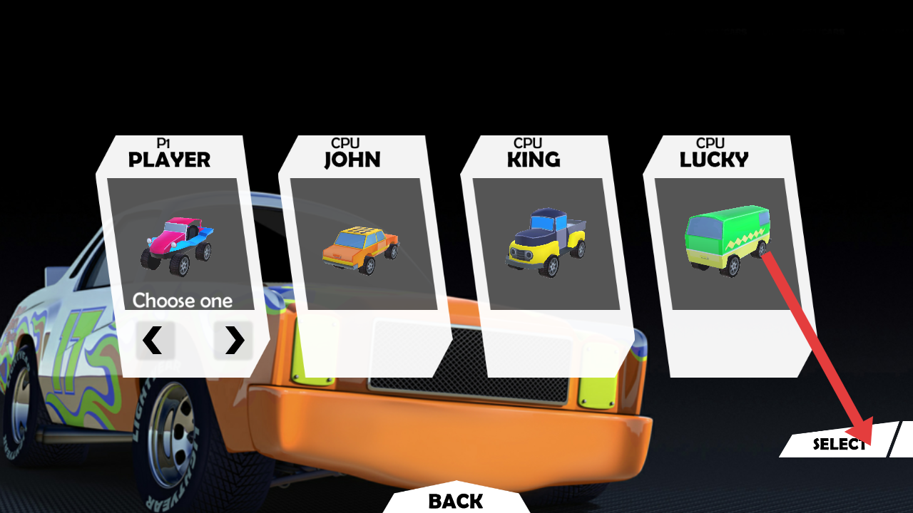 2、在角色或車(chē)輛選擇界面確定目標(biāo)后點(diǎn)擊【SELECT】按鈕,確認(rèn)選擇以進(jìn)入正式比賽環(huán)節(jié)。