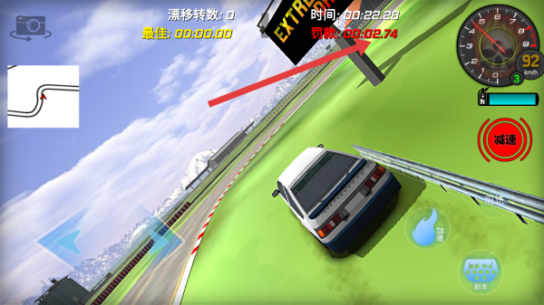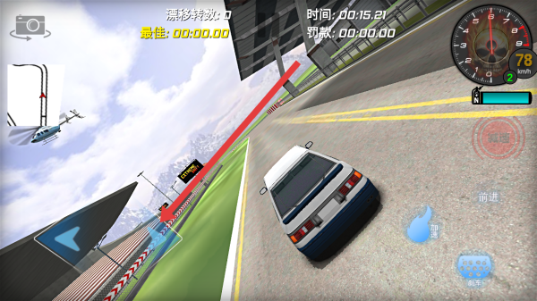 2、駕駛過程中,留意賽道上的紅色引導(dǎo)標(biāo)記,合理使用【加速】等按鈕,保持最佳行駛路線。