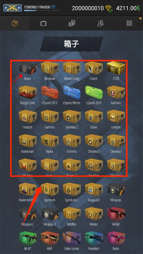 csgo開箱模擬器2中文版是模擬csgo開箱玩法的工具,喜歡csgo開箱的玩家對其又愛又恨,開箱模擬器讓玩家隨意購買道具箱子開啟,模擬效果很真實(shí),道具對標(biāo)端游,細(xì)節(jié)一模一樣,有新道具就更新,帶來暢快開箱體驗(yàn)。