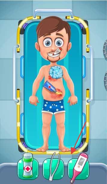 3、面對新的病人,根據(jù)箭頭指向及下方工具,選擇合適工具進行治療操作。