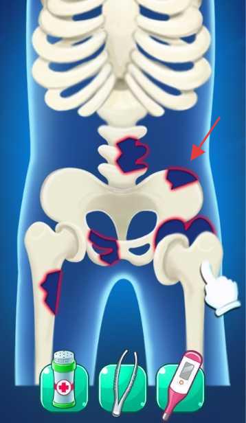 2、出現(xiàn)骨骼X光圖時,點擊箭頭所指的骨骼損傷處,進行診斷確認。
