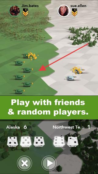1、在游戲界面中,可與【random-players】對(duì)戰(zhàn),通過(guò)擲骰子決定行動(dòng),利用地形和軍事單位布局策略。