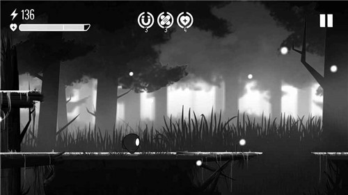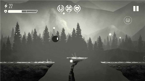 3、在森林場(chǎng)景里,操控小球在平臺(tái)間移動(dòng),小心陷阱和縫隙,收集光點(diǎn)增加電量,順利通過(guò)關(guān)卡。