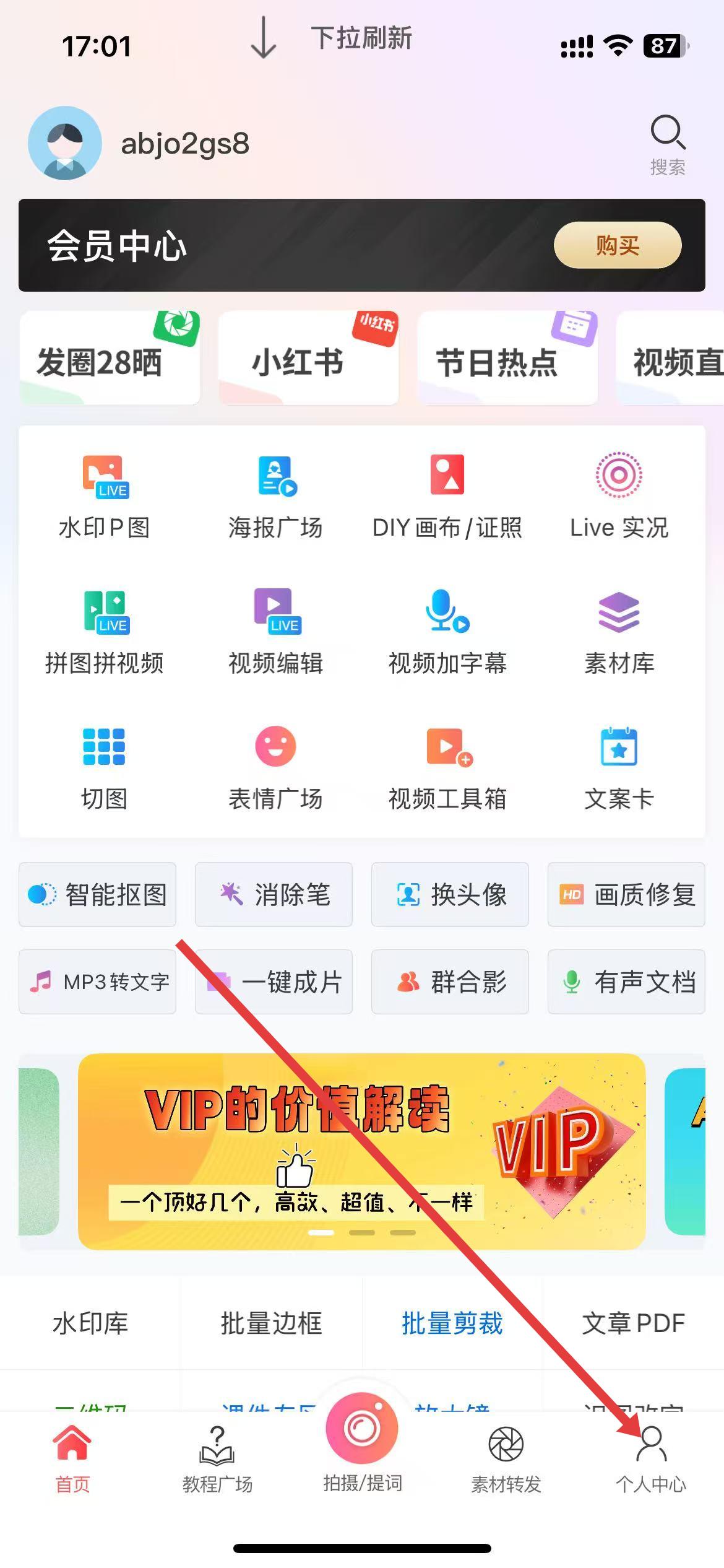 1、打開微脈水印相機(jī),點(diǎn)擊底部導(dǎo)航欄右下角的個人中心。