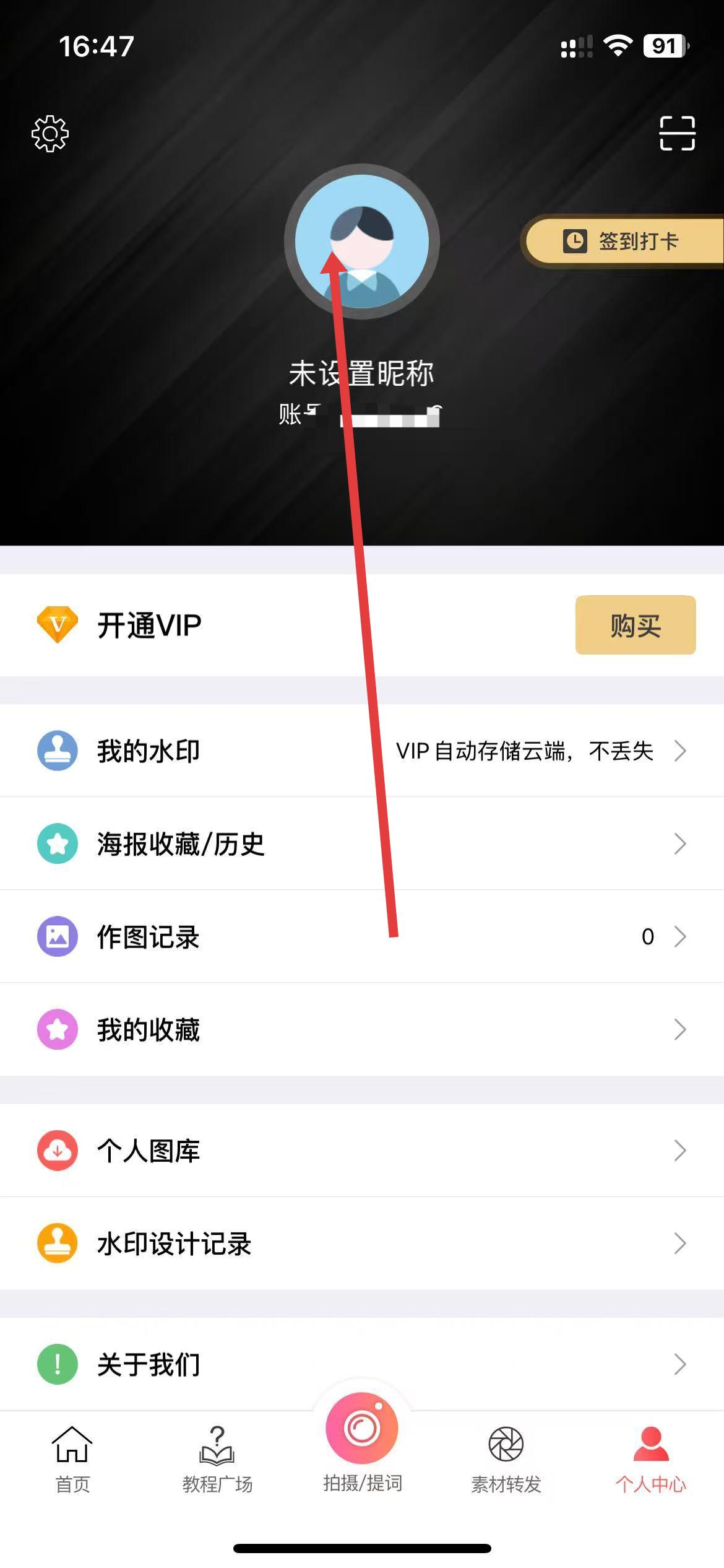 2、在個人中心頁面,點(diǎn)擊頭像區(qū)域,進(jìn)入賬號設(shè)置頁面。