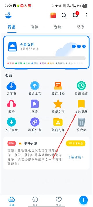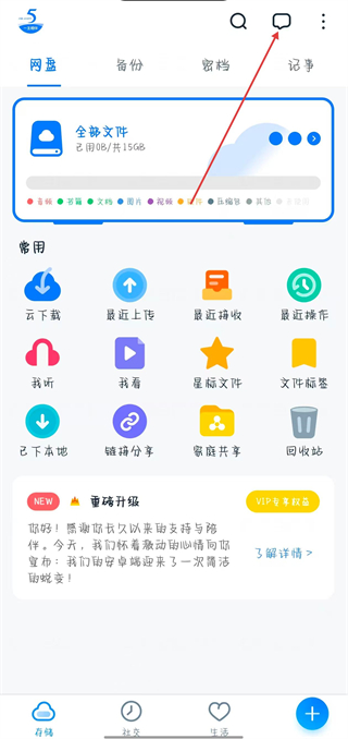 1.存儲(chǔ):網(wǎng)盤首頁UI全新優(yōu)化,文件分類更清晰,找文件更快更順手。