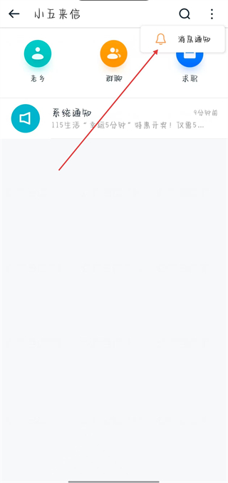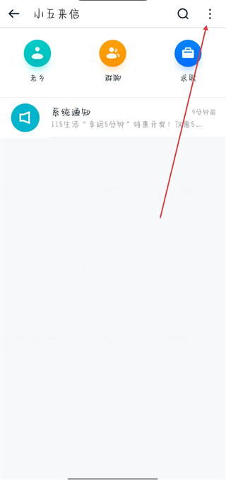 2、在小五來信頁面,點(diǎn)擊右上角的三點(diǎn)圖標(biāo)。