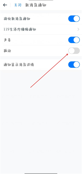 4、進(jìn)入新消息通知頁面后,點(diǎn)擊振動(dòng)開關(guān)按鈕即可。