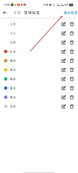 3、在管理標(biāo)簽頁面,點(diǎn)擊添加標(biāo)簽選項(xiàng)。