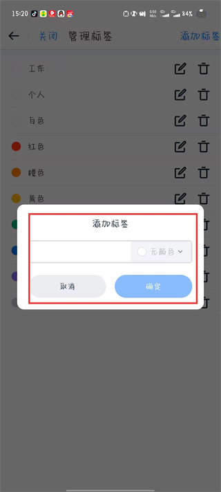 4、輸入標(biāo)簽名稱,選擇標(biāo)簽顏色,點(diǎn)擊確定。