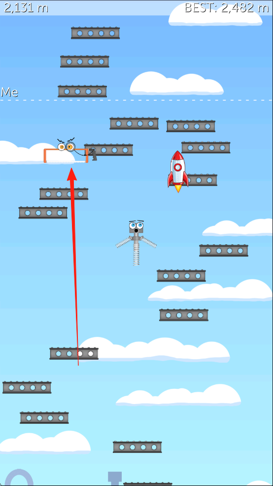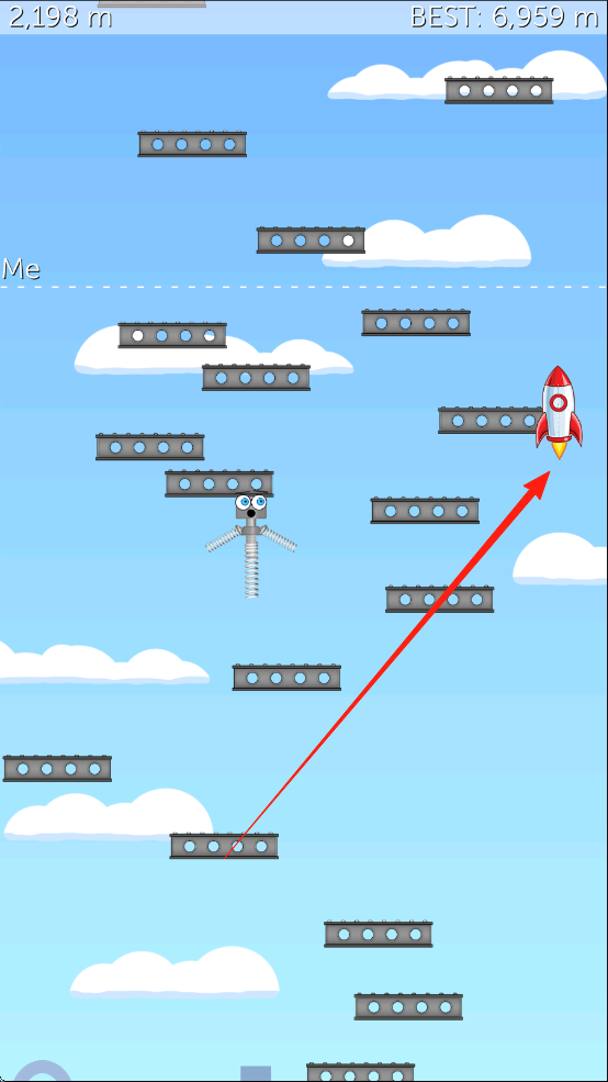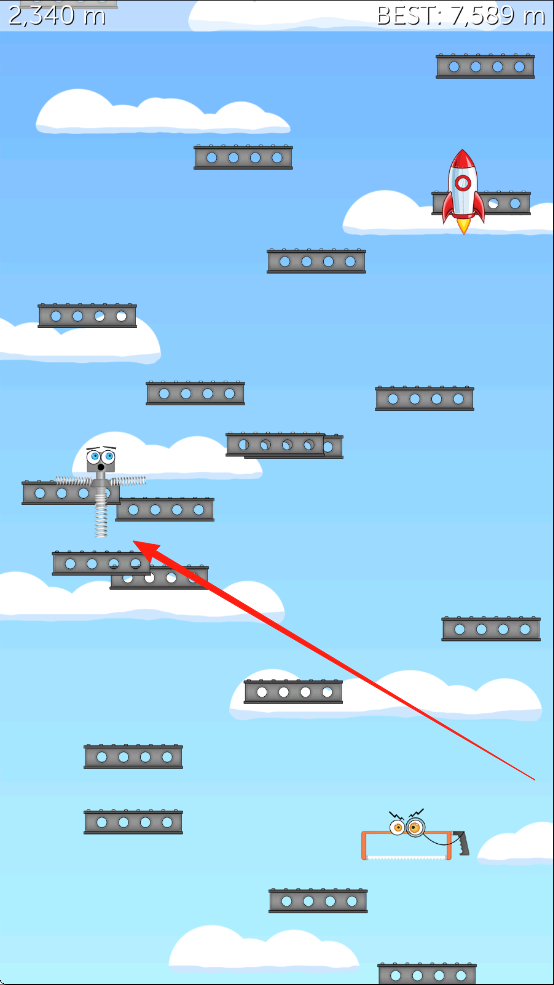 2、合理控制長按屏幕的時間,長按蓄力越長,彈簧彈跳力度越大,注意云層的彈性差異,部分特殊云層需要調(diào)整力度才能順利起跳。
