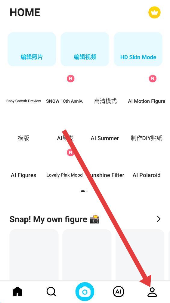 1、打開Snow相機(jī),點(diǎn)擊底部導(dǎo)航欄最右側(cè)的人像圖標(biāo)。