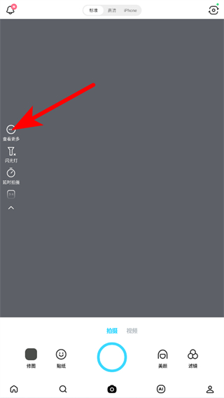 2、在拍攝界面中點(diǎn)擊查看更多,展開功能選項(xiàng)列表。