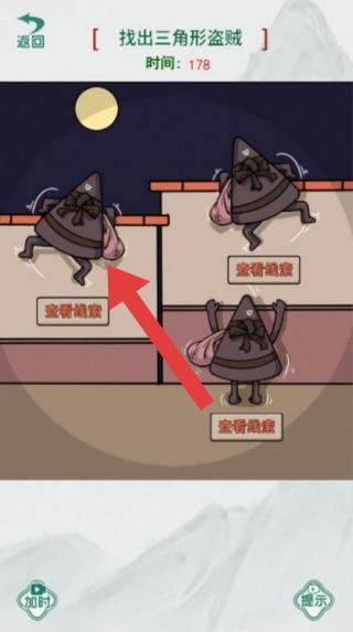 3、畫面中有幾個戴著三角形頭套、標(biāo)注蛋餅盜賊的角色,玩家需在其中找出目標(biāo)對象,以豐富有趣的梗和多樣關(guān)卡設(shè)計吸引玩家,適合用于消磨時間。