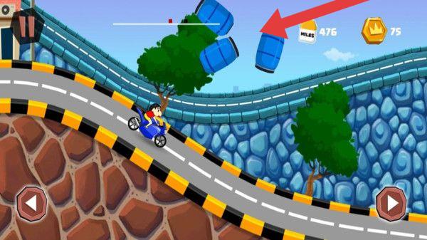 2、注意觀察場景,如遇到類似圖中【藍(lán)色桶】等障礙,操控角色及時躲避,確保行駛安全并留意【MILES】里程數(shù)變化。