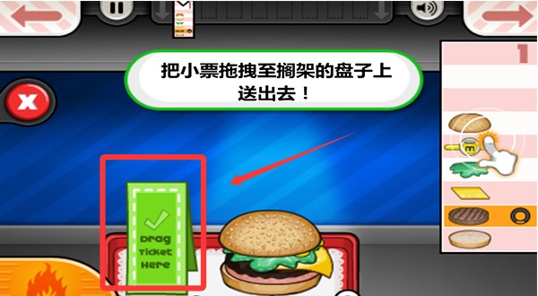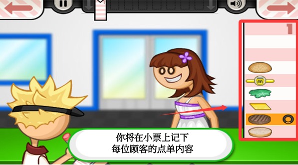 2、根據(jù)訂單內(nèi)容,選擇所需原料移動(dòng)至制作區(qū),準(zhǔn)確控制食材掉落的位置,確保漢堡結(jié)構(gòu)整潔美觀。