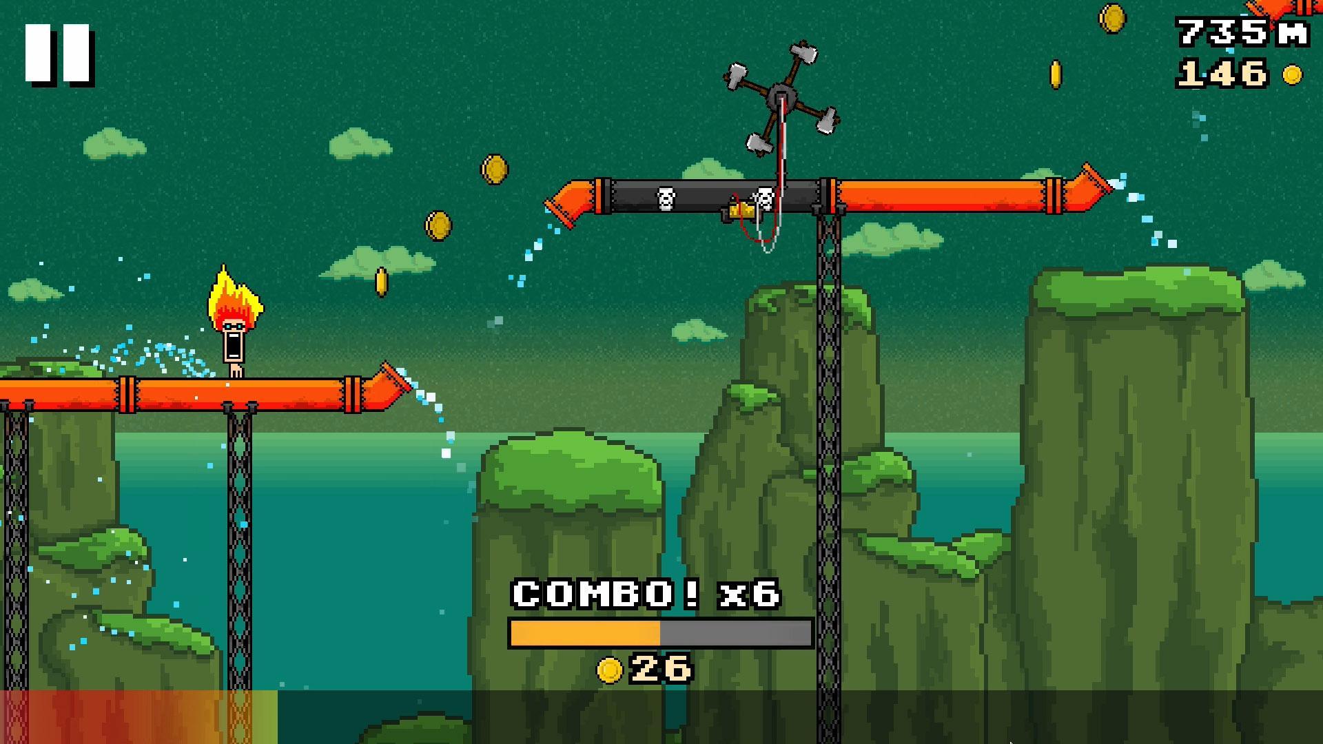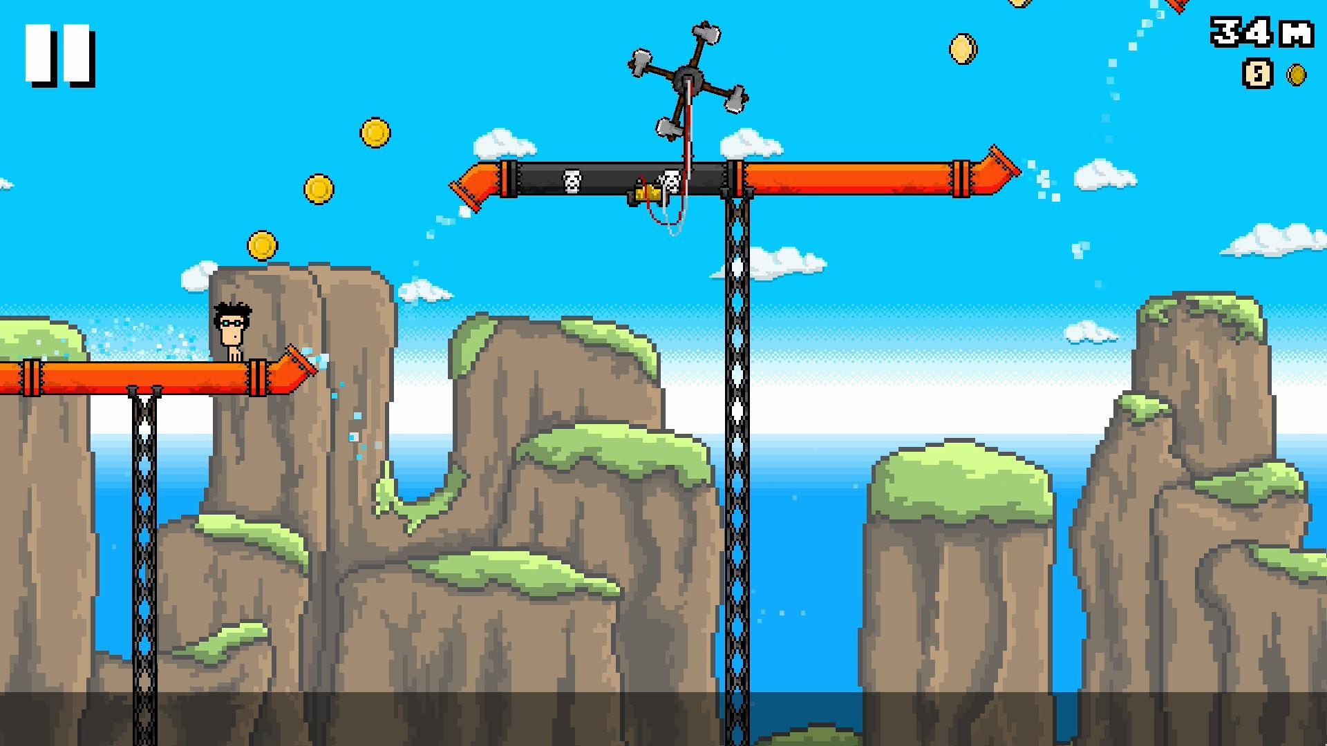 2、利用角色的跳躍等動作,保持在管道上的平衡,連續(xù)成功躲避障礙可積累連擊數,獲取更多金幣。