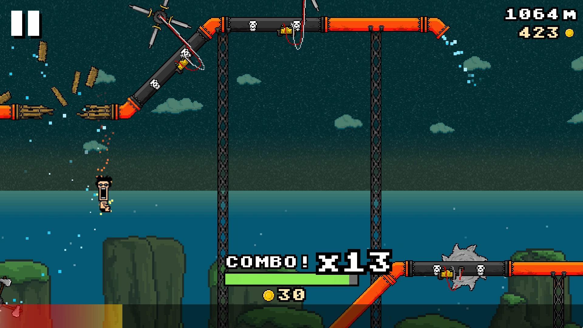 3、面對更復雜的管道布局和障礙(如發(fā)射物),靈活操作角色,持續(xù)提升連擊數,挑戰(zhàn)更遠距離。