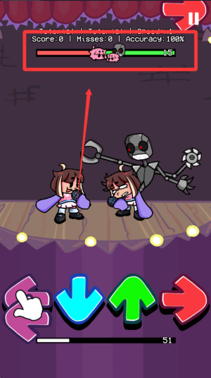 2、獨(dú)特角色設(shè)定,主角QT是與男友相伴的可愛形象,實(shí)際為機(jī)器人設(shè)定增加趣味性,超百首FNF歌曲庫,滿足不同玩家的音樂喜好。