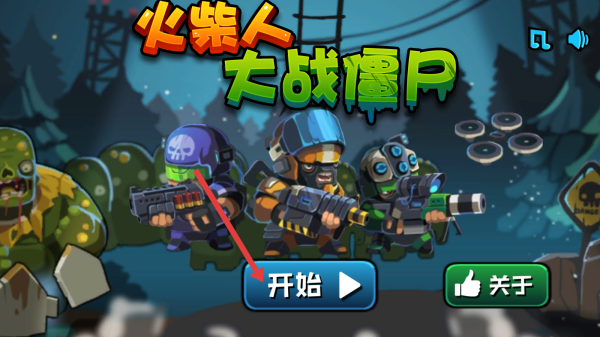 1、在火柴人大戰(zhàn)僵尸游戲啟動界面,點擊【開始】按鈕,進(jìn)入游戲主界面。