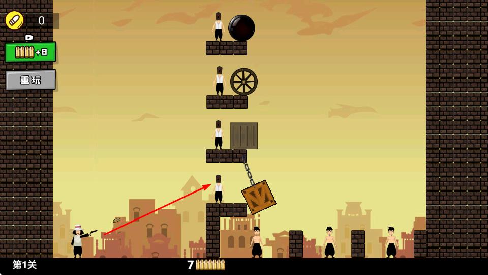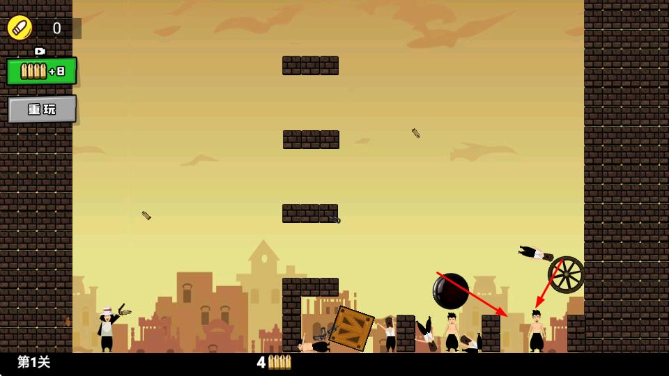 2、場景中有各類道具,玩家可通過射擊使道具移動(dòng)或掉落,利用其砸擊敵人,增加通關(guān)效率。