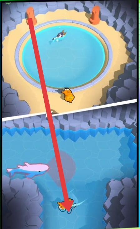 1、操控角色在水域場(chǎng)景中,捕捉魚(yú)類(如箭頭指向的魚(yú)),收集不同種類的水生生物,豐富收藏。