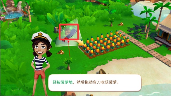 2、點(diǎn)擊成熟的農(nóng)作物地,即可出現(xiàn)收集道具,拖動(dòng)至農(nóng)作物上即可收取。