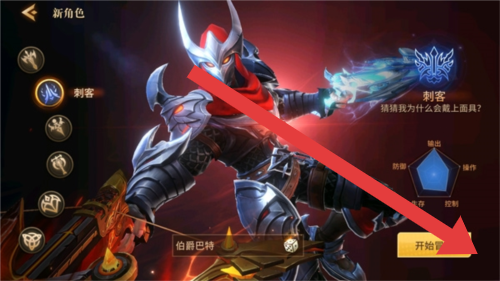 1、進(jìn)入游戲界面,看到《Dungeon Hunter VI》的宣傳畫(huà)面后,點(diǎn)擊相應(yīng)角色(如刺客“伯爵巴特”)下方的【開(kāi)始冒險(xiǎn)】按鈕。