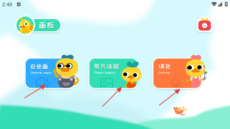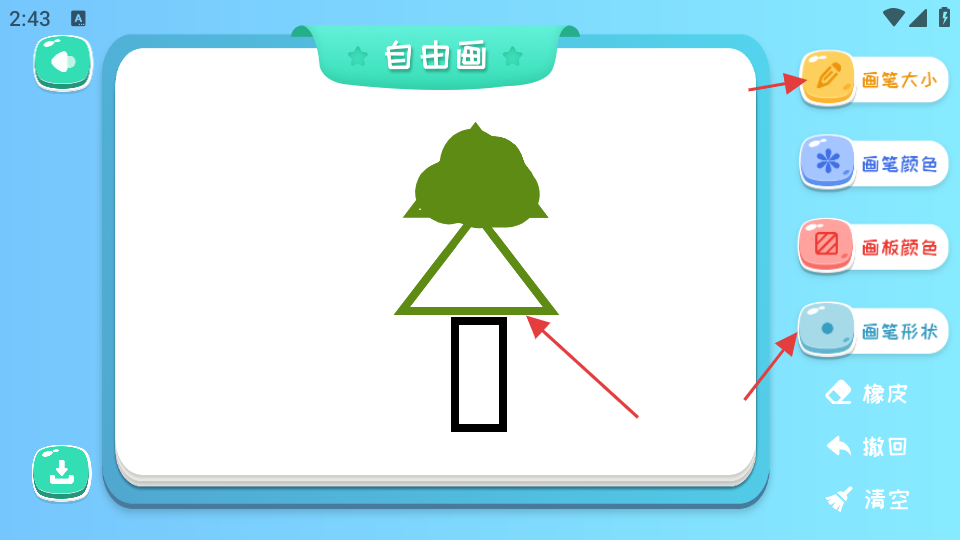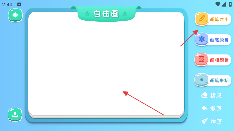 1、進入游戲主界面孩子可看到色彩繽紛的工具欄,點擊選擇心儀的畫筆和顏色,在空白畫布上輕輕滑動,開啟自由繪畫之旅。