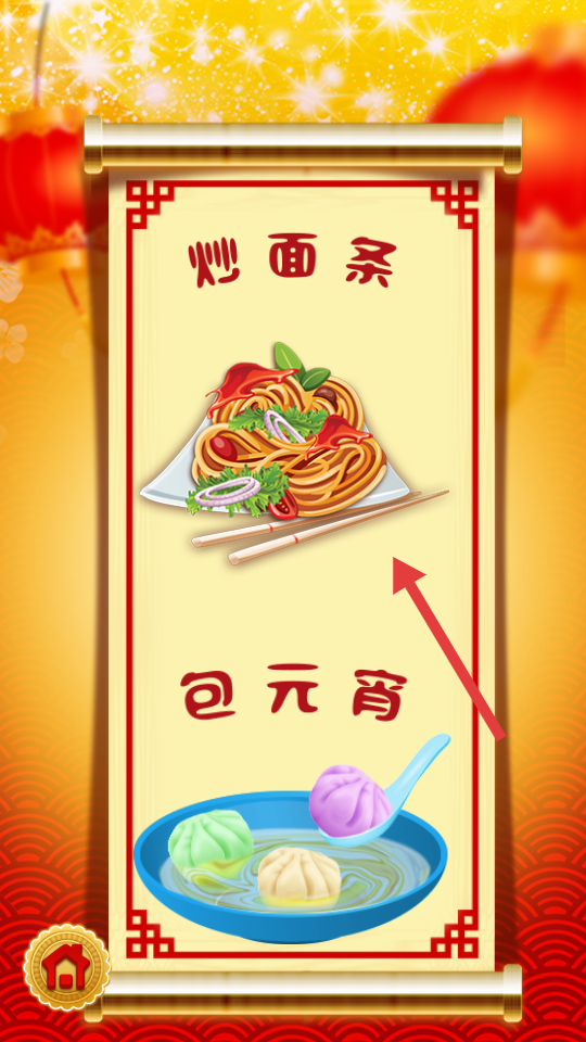 1、選擇美食場景:在主界面挑選心儀的美食種類和主題場景,如春節(jié)餃子宴中秋月餅鋪等,點擊進(jìn)入專屬廚房空間。