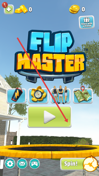 1、點擊游戲界面中綠色的播放按鈕的頁面,開始游戲,進入蹦床翻轉的挑戰(zhàn)環(huán)節(jié)。