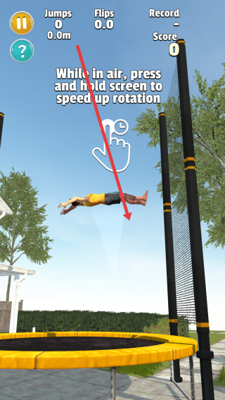 2、在空中時,按住屏幕加速角色旋轉,按照提示While in air, press and hold screen。