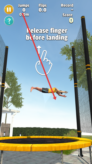 3、在落地前松開手指,遵循提示【Release finger before landing】,確保角色平穩(wěn)落地,獲取分數。
