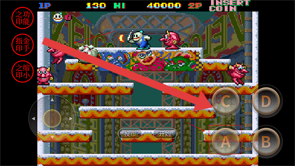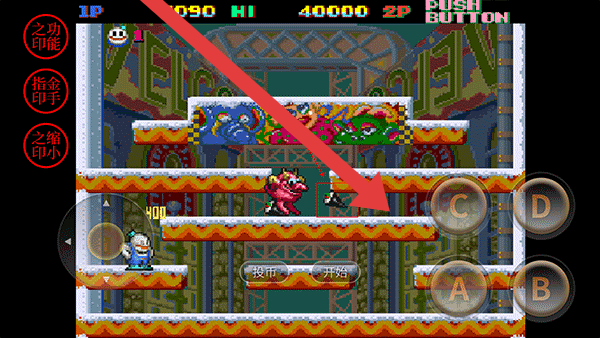 1、進(jìn)入游戲后,使用左側(cè)虛擬方向鍵操控角色移動,點擊右側(cè)【A/B/C/D】按鈕發(fā)動攻擊或釋放技能。