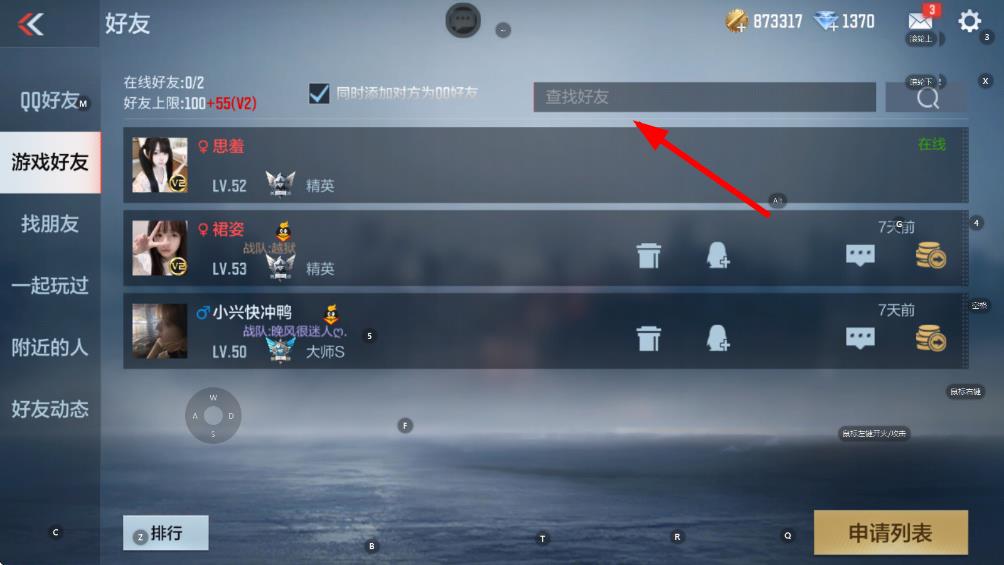 3、在好友界面的查找好友搜索框中,輸入對方的游戲昵稱或賬號,搜索找到想添加的好友后,點(diǎn)擊其名字旁邊對應(yīng)的添加好友按鈕等待對方同意即可。