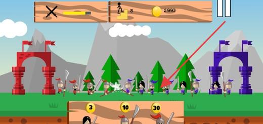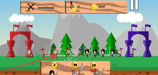 1、游戲中,點擊下方帶有金幣數值的戰(zhàn)士頭像,召喚戰(zhàn)士上場戰(zhàn)斗,攻擊敵方部隊。
