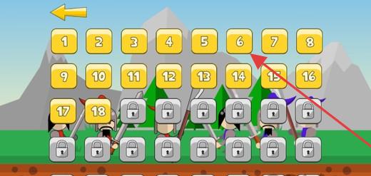 3、戰(zhàn)斗勝利后,解鎖新關卡,在關卡選擇界面(如箭頭所指),點擊已解鎖關卡繼續(xù)游戲。