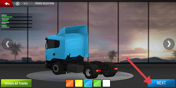 3、進(jìn)入卡車選擇界面后,若確認(rèn)選擇當(dāng)前卡車,點擊【NEXT】按鈕,進(jìn)入后續(xù)游戲環(huán)節(jié)。