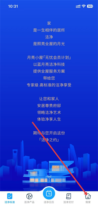 1、打開月亮小屋app,點(diǎn)擊底部導(dǎo)航欄我家選項(xiàng)。