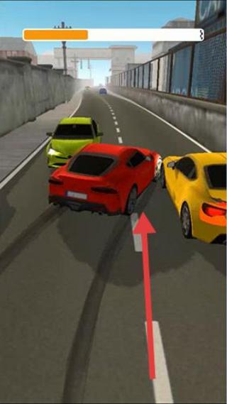 1、在游戲駕駛場景中操控紅色車輛在道路上行駛,注意躲避其他車輛,避免碰撞。