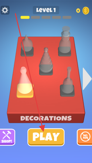 1、在游戲初始界面,看到“Level 1”及“DECORATIONS”字樣,點擊【PLAY】按鈕,進入游戲關(guān)卡。