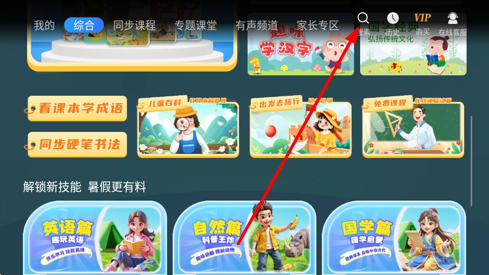 1、打開同步小學課堂APP進入主界面,點擊右上方的搜索圖標。
