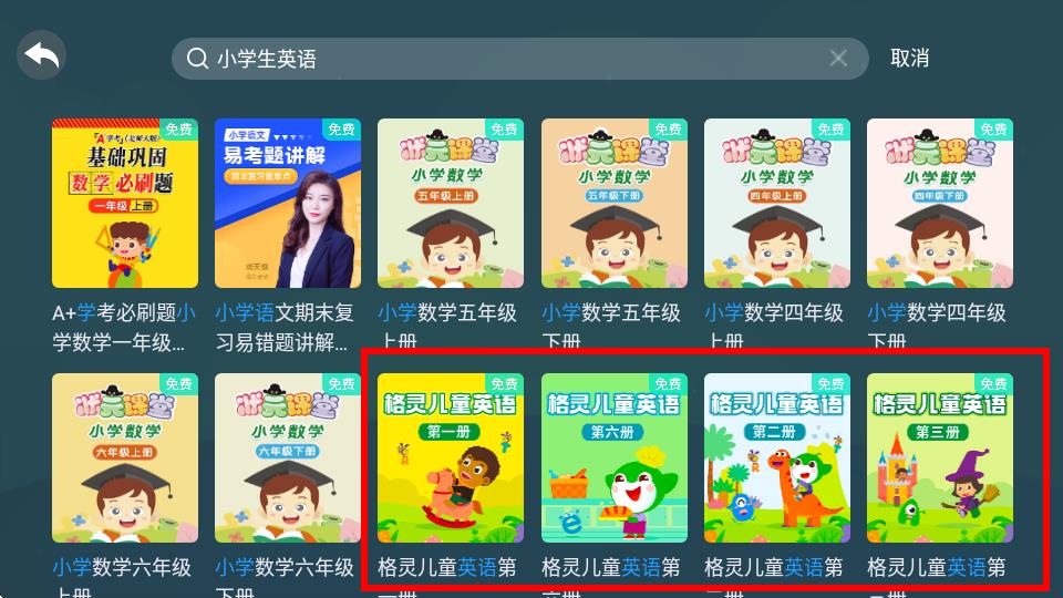 3、在搜索結果中找到感興趣的課程,例如格靈兒童英語系列,點擊課程封面。